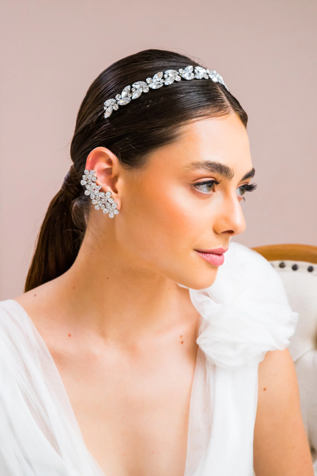 Ear cuff em metal com banho dourado. Pedrarias em cores delicadas cravejadas manualmente.